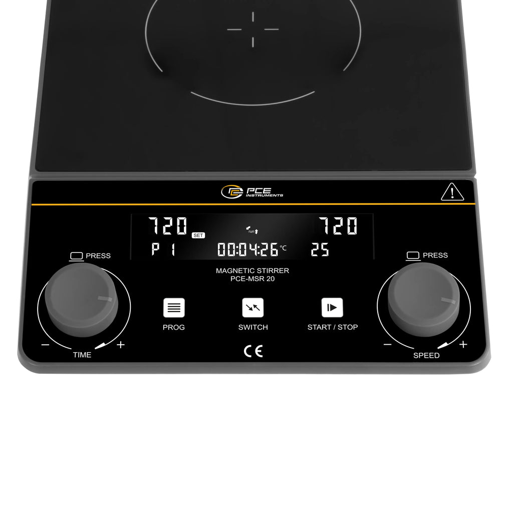 Nuestro agitador magnético guarda automáticamente los últimos parámetros ajustados. Además, tiene una memoria para 6 ciclos de agitación programados individualmente. Esto permite iniciar un trabajo de forma rápida con los ajustes deseados. El agitador magnético integra un temporizador que permite un control preciso del tiempo desde 1 minuto hasta 99 horas y 59 minutos.
