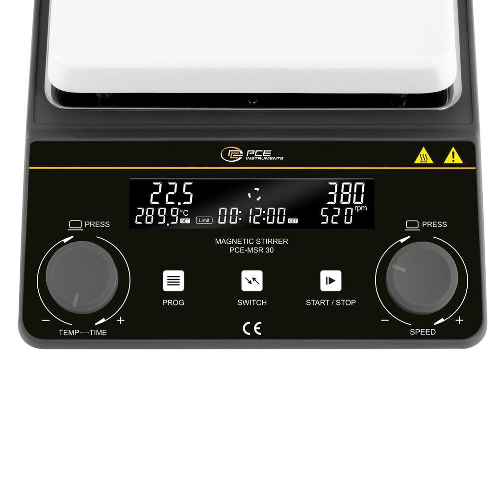 La placa agitadora es de aluminio fundido a presión y cuenta con una superficie de 155 x 155 mm que garantiza una distribución uniforme del calor y una gran resistencia a las influencias químicas. Se incluye un imán agitador de Ø 8 x 30 mm, por lo que el agitador magnético es ideal para aplicaciones exigentes. Funciones como el sentido de giro ajustable, un temporizador con un amplio rango de 1 segundo hasta 99 horas y 59 minutos y la posibilidad de guardar hasta 6 programas de agitación individuales, ofrecen la máxima flexibilidad en el trabajo diario de laboratorio.