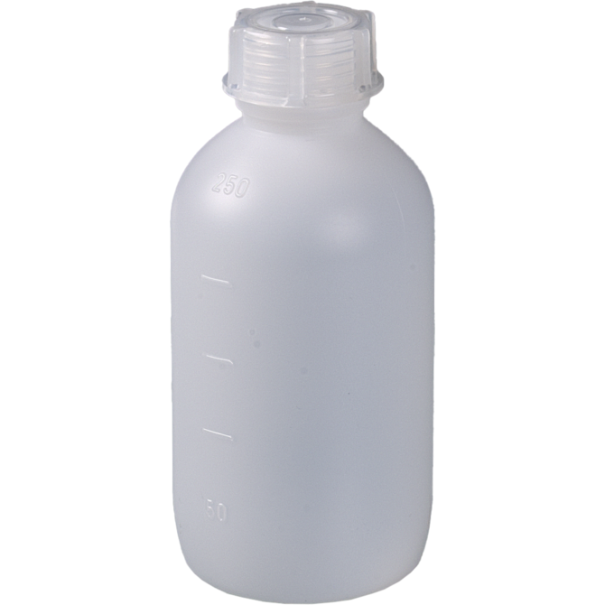 0301-0250 Botella universal graduada de HDPE con tapón de PP, 250ml