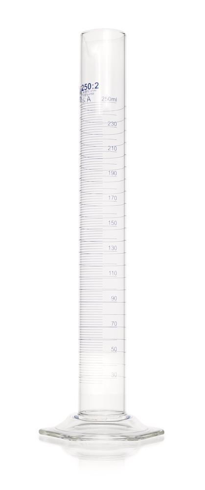 Acc. según DIN ISO 4788. Forma alta. Con base hexagonal y pico. El espesor de pared estandarizado en todo el rango de medición evita el error de cuña. Calibrado a IN. Temperatura estable hasta 250 ° C sin cambios de volumen.