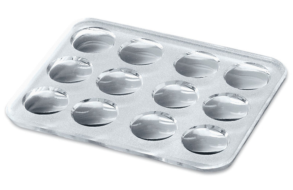 Con esquinas redondeadas y superficie mate. Dimensiones de las hendiduras: Ø aprox. 16 mm, profundidad aprox. 2 mm.