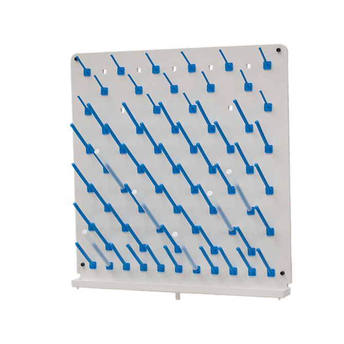 Las varillas, de gran estabilidad, se pueden insertar y enclavar de forma individual en los agujeros del escurridor y cambiar de posición en todo momento. El escurridor, en combinación con las varillas intercambiables de tres longitudes diferentes (60 mm, 100 mm y la prolongación a 150 mm), se puede adaptar a los recipientes a los que se tiene que efectuar el secado.
