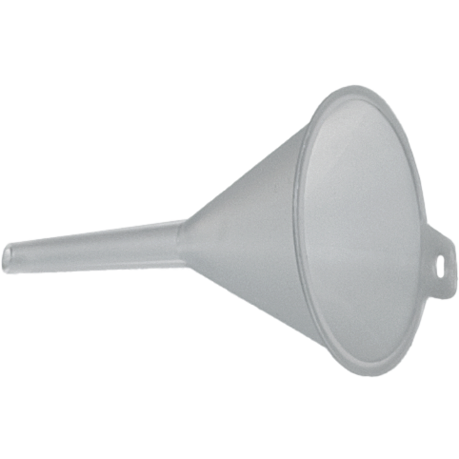 Los embudos universales son embudos versátiles para una amplia gama de aplicaciones. Los embudos universales son la ayuda ideal para la decantación rápida y fácil de líquidos u otros materiales de flujo libre. Las paredes empinadas y lisas, así como las nervaduras de ventilación en la salida, garantizan un vaciado eficaz y rápido. La práctica asa de transporte y el lazo para colgar del embudo facilitan su manejo. Los materiales de PP o PE de alta calidad ofrecen una gran resistencia a muchos productos químicos y ácidos.