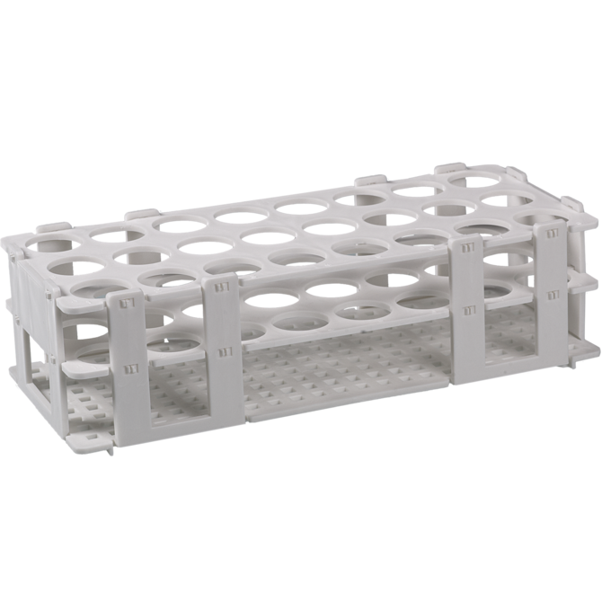 Las gradillas para tubos de ensayo son fáciles de montar y se pueden desmontar para ahorrar espacio de almacenamiento. Una vez montadas, las gradillas pueden apilarse.