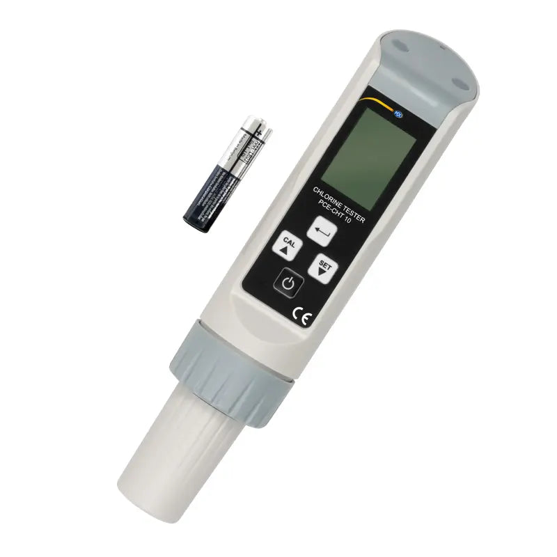 La compensación de temperatura automática aumenta la precisión del medidor de cloro. La desconexión automática del medidor de cloro tras 20 minutos de inactividad aumenta la autonomía de la pila. Como el dispositivo es pequeño y manejable es especialmente apto para un uso móvil. Es por ello que el medidor de cloro libre es tan apto para la medición del agua en piscinas. El manejo del medidor de cloro es sencillo ya que todas las teclas están marcadas con el parámetro correspondiente.